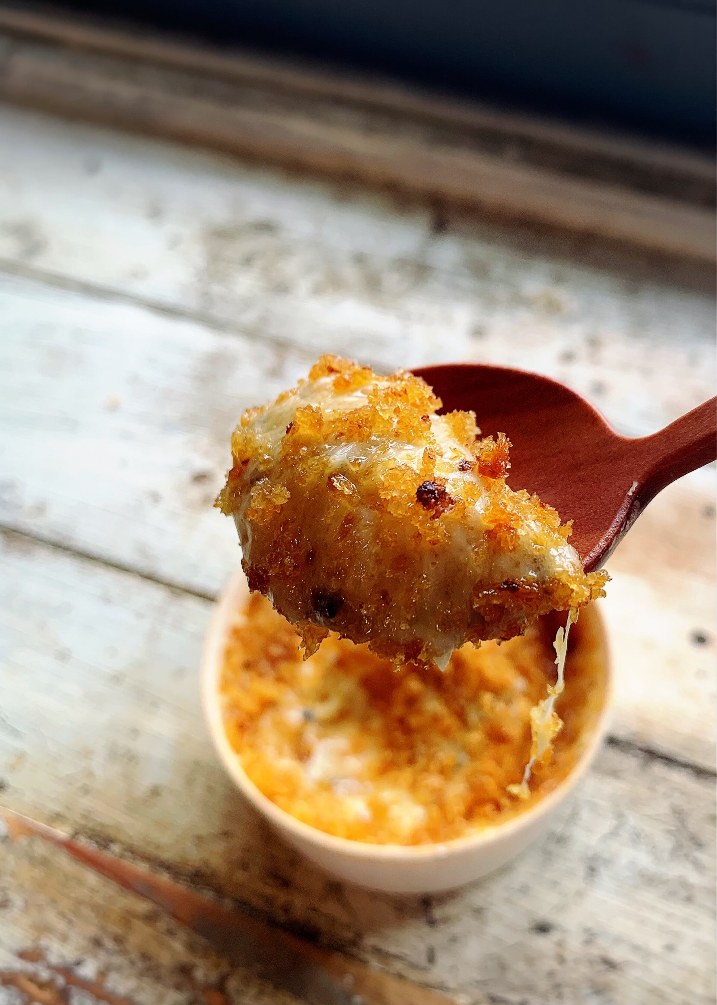 わっぱに入ったスプーンで食べるクリームコロッケ。